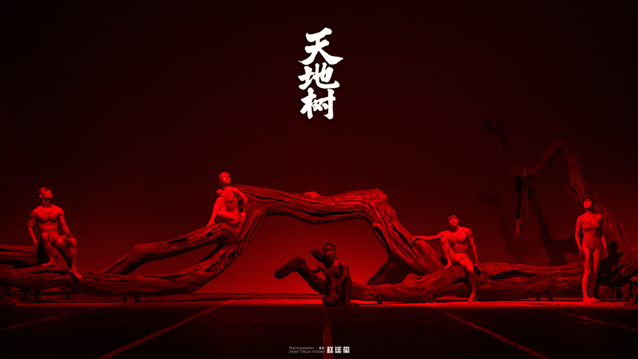 《天地树》将舞台化为“宇宙之树”,将树的三个部分——树冠、树根、树干,分别对应天、地、人三重维度,让观众在光影与声息之间,感受人、自然与宇宙共生的呼吸与回响。