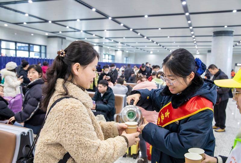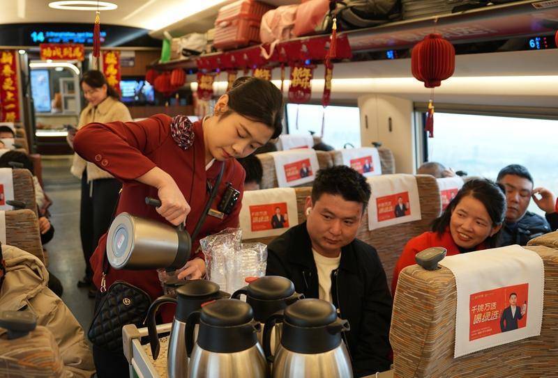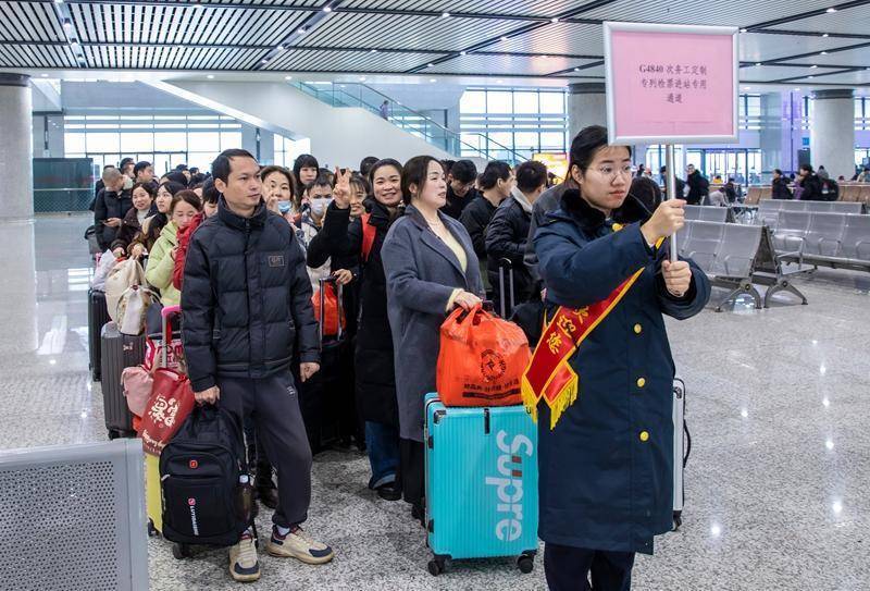 吉安西站同步优化服务,在“红土情 金庐陵”服务台配备便民物品,开设专用候车区和检票通道,组织党团员突击队提供引导、搬运、咨询等服务,确保务工人员便捷出行。列车上布置了中国结、窗花等装饰,设置“务工人员服务角”,配备口罩、充电设备、应急药品等便民物品,并组织有奖竞猜等互动活动,营造温馨出行氛围。